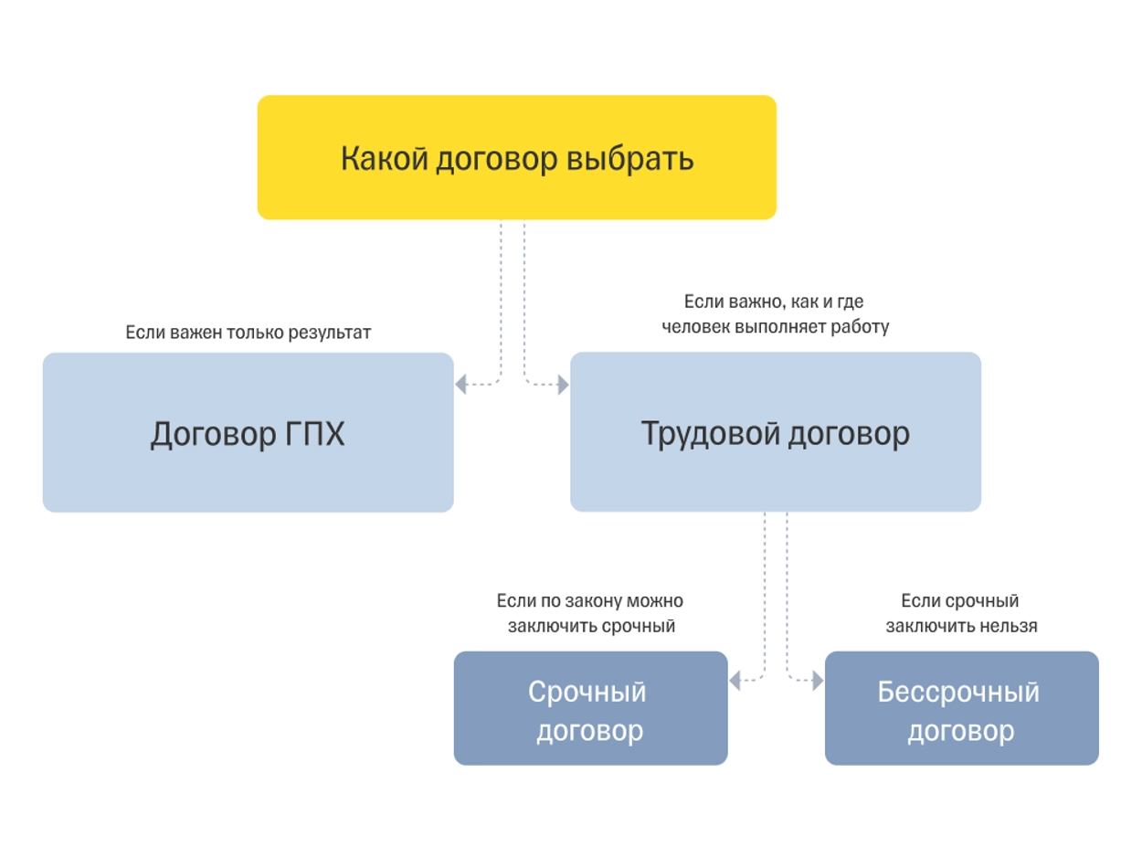 Гражданско-правовой договор — это соглашение, заключаемое между физическим или юридическим лицом и исполнителем (например, фрилансером, подрядчиком). В отличие от трудового договора, гражданско-правовой договор не создает трудовых отношений, а регулирует взаимоотношения по оказанию определенных услуг или выполнению работ. В таком договоре стороны сами определяют условия сотрудничества, включая сроки, объем работ, оплату и ответственность.