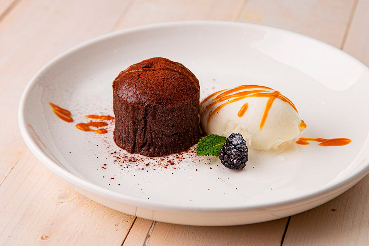 Шоколадный фондан подается горячим, сразу после выпечки, чтобы сохранить жидкое сердце. Для подачи можно использовать различные дополнения, такие как свежие ягоды, мятная стружка или ванильное мороженое. Именно в сочетании с ванильным мороженым шоколадный фондан приобретает особый вкус и аромат.